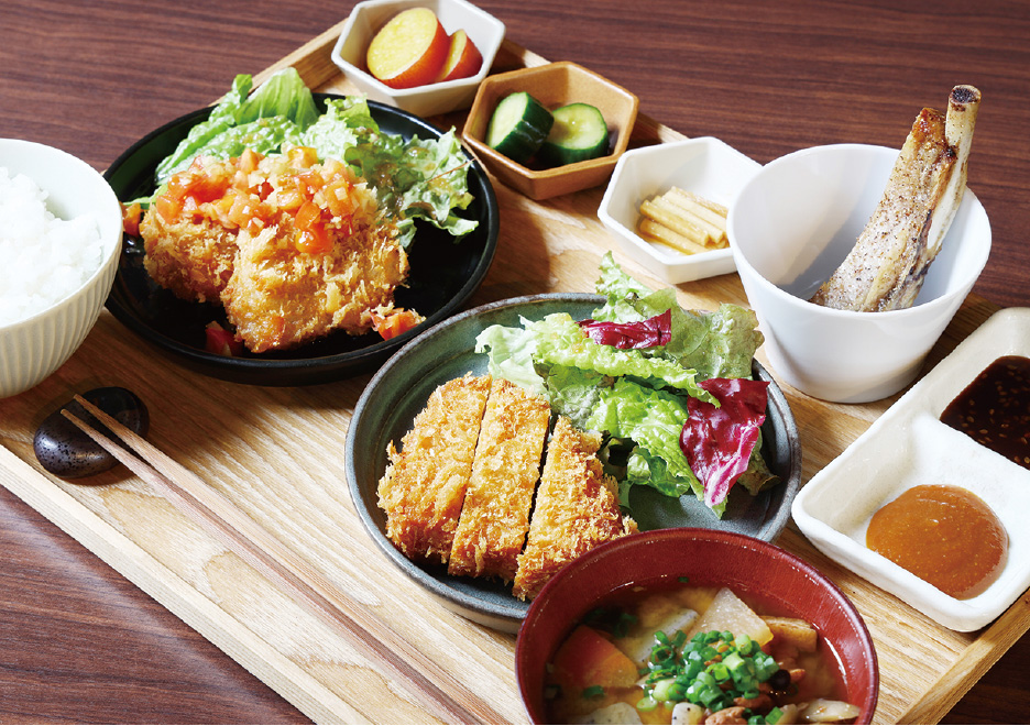 GENのとんかつに使うのは、カナダ育ちの三元豚「ハイライフポーク」。タイムやオレガノ、シナモンなどを配合した飼料で育ちます。脂が甘く、あっさりとして口当たりの良い日本人好みの豚肉を、粗めのパン粉と特製油でカラッと揚げました。ランチタイムは御前スタイルの「贅沢ランチセット」がおすすめ。とんかつソースと甘めの味噌だれの二種類のソースをお好みで。日替わりの小鉢も三種類具沢山の豚汁も人気です。ゆったりしたカウンター席もあるので、おひとり様でもお気軽にどうぞ。