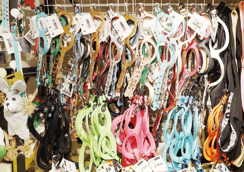 ●NOTE:カラダに優しいメガネ型のバディベルトは首に負担がかからないので、獣医さんからの紹介でご来店されることも。豊富なカラーからお選びいただけます。フードやトリーツのラインナップも充実していて、無添加や無着色にこだわった品揃えをご用意しました。